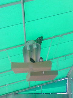 某所で見た鳥の巣です。いつも親鳥が頑張って餌運びをしています。巣の下に箱が2重になっているのはフンの対策とヒナが下に落ちないように。(以前落ちたそうです)無事に成長して巣立ってほしいです。