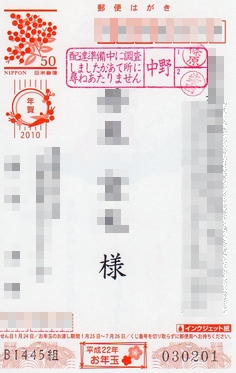 古い年賀状を使って某ラジオ番組のプレゼントに応募しました。受付で「この年賀状は 普通に出す分ですが、 このままでも良いんですか?」と確かめてみると、郵便局の人は「左にある【年賀】のところを ボールペンなどで消してください。 念を入れるのだったら 下の方のお年玉の方の番号も消してください。」との事でした。えっ、応募したプレゼントの景品ですか?「デジタルボイスレコーダー」で AM・FMラジオ付(予約機能あり)との事です。当たる事を祈っていますが、でも、お年玉の部分を消したから当たらないかな??