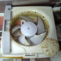 今年の汚れは?大掃除の第一弾です。換気扇を掃除の為に取り外しました。 油などの汚れもありましたが、洗って綺麗になりましたよ。しかし、綺麗になった方の写真は無いのですが。