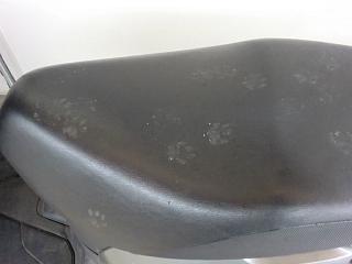 あっバイクのシートの上には足跡に見えるんですが?猫かな??それとも他の動物かな??普段は、家に帰るとシートにはカバーを掛けていたんですが、忘れていたな。しかし、人が座るところなのに、困ったもんだ!