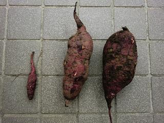 道路拡張の為に小さくなった畑があり、その持ち主が使わないので、我が家や御近所の数人で借りています。その畑では作る物はバラバラ。今年の我が家の作物は芋収穫の一部です。 大きさもバラバラですが、量は結構ありました。ある程度の大きさ物は他の人と物々交換?で大根(写真無し)をいただきました。掘るのも大変でしたが、夏の水不足や酷暑を考えると良く採れたな・・と思っています。