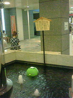 昨日のブログに書いたのは「まつちカッパ」です。池の看板に書いてある説明です(読みにくいかも・・・)池にいると飽きるのか?時々、お店の店頭でひと休みしています。実物を見たい方は松山に来てくださいね。