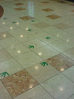 友達との待ち合わせ場所のは「マツチカたうん」にある噴水の前です。あれっ?何かの足跡かな?噴水がある池の中には何かいるし・・・。答えはまた明日・・・。