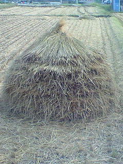 1枚目の写真は藁塚で良いのかな?2枚目は稲わらを積み上げたもの?3枚目は藁を刻んだものです。稲刈りが終わった田んぼの状態です。前にも書いたとおり、まだまだ田んぼや畑が多い場所に住んでいるので、こういう風景も見ます。最近は『1枚目の写真は藁塚』と『2枚目の稲わらを積み上げ』は少なくなっています。昔は写真の1枚目・2枚目が多かったけど、最近は3枚目の写真が多いです。