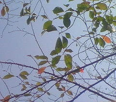 秋になれば、木からは多くの葉が落ちていきます。赤い色や黄い色の落ち葉・・・、綺麗なんですが、ちょっとさびしさを感じます。でも、今日の空は多少の雲があっても晴れていました。日光があたる場所に出て動くと汗ばんできました。お昼のランチを済ませた後でした。椅子に座ると眠気が・・・。
