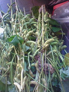 帰りに会った農家の人から『枝豆 要るかね?』との言葉に「頂きます!」と言うと出てきたのは、かなりの量の枝豆でした。むろん枝付きです。枝の付いたまま湯掻くような大きな鍋が無いもんで、鞘の部分をにして少しだけ塩をしてから電子レンジ(600w)で3分から5分ぐらいでOK。夕飯を食べてからゆっくりと切っていきます。