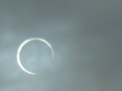 明日は、朝、金環日食がありますね。では、『「金環日食」と「皆既日食」の違いは?』と言われて答えれない自分です。ネットなどで調べてみると「皆既日食」の場合は完全に太陽を隠す状態で地上も暗くなって夕暮れの状態だそうです。「金環日食」の場合は太陽が隠れても少しリング状の部分が見えて地上は普通の明るさだそうです。その原因は地球の周りを回る月の軌道の差です。月の軌道は完全な円形ではなく、ほんの少し楕円状なので太陽の隠れ具合に差が出るそうです。 あとはお空の天気だけですね。