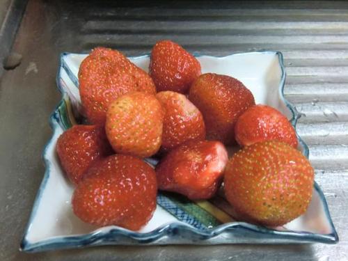 ちょっと大きさと色が「ふぞろい」ですが、頂いたイチゴです。「もう終わりの時期なものですが 甘いから食べてね。」と言われましたが、露地物ですから甘さは抜群でしたよ。ハウスものも良いのですが、季節を味わうのも風情かな?おばちゃん、本当にいつもありがとうございます。