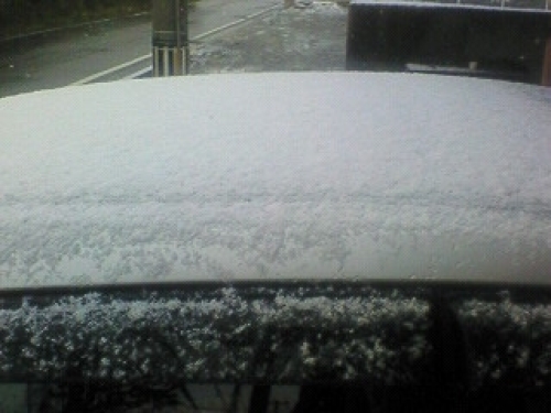 今日は朝から雪でした。車の上にも・・・・。道路はチェーン規制などは無く走れますが、事故や渋滞が怖いので、電車での出勤でした。雪はお昼頃まで降っていました。