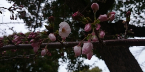 今日も桜の話題です。公共施設にあった桜です。その中でもここはちょっと日当たりが良くない感じの場所です。桜の木につぼみのままと開花している写真です。ニュースでは≪高知市の桜(ソメイヨシノ)が全国で最も早く満開になった≫との事でした。さー、お花見の準備も始まっているのかな?