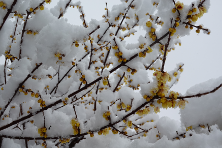 日記 昨日まで雪も道路の端にある程度でしたが・・・朝起きたら! 一面雪景色でした。 予報では寒波は今週いっぱい居座るとのこと😢 雪とロウバイの花 以上
