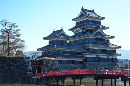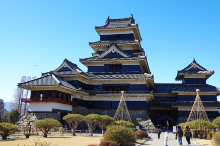 松本駅からの眺め。山頂は雪をかぶって白くなっていた。