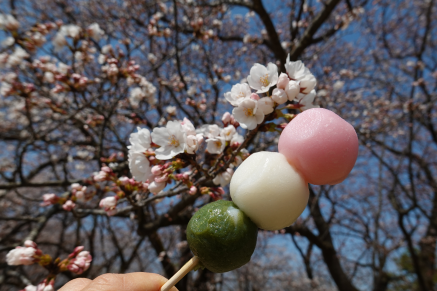 桜を鑑賞しながら三色団子食す。なんとも贅沢な時間!