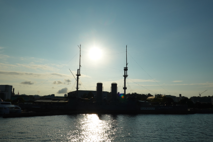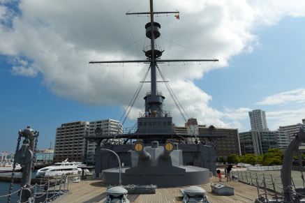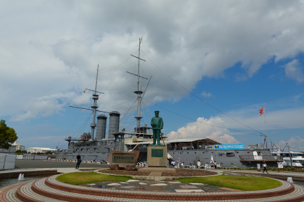 猿島から戻る途中、フェリーから撮影した「戦艦三笠」