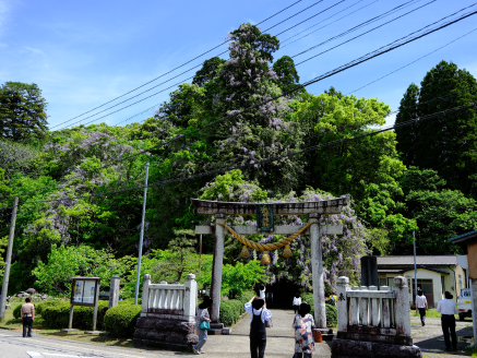 日記 この時期は、藤の花やツツジが見頃ですね。 富山県氷見市にある磯部神社の藤の花が有名なので見に行ってきました。 地元新聞でも記事に取り上げられていました。 磯部神社 およそ40メートルにわたり広がっています。 見ていると🍇に見えてくる(笑) 藤の花を見に多くの人が訪れていました。 お守りにも藤の花が形取ってありました。 昼食は、 富山県南砺市にある「くろねこ3」で食事。 来店は2回目。 海老カレーです。 ライスが猫の形をしていて可愛いですね(*´ω`*) 以上
