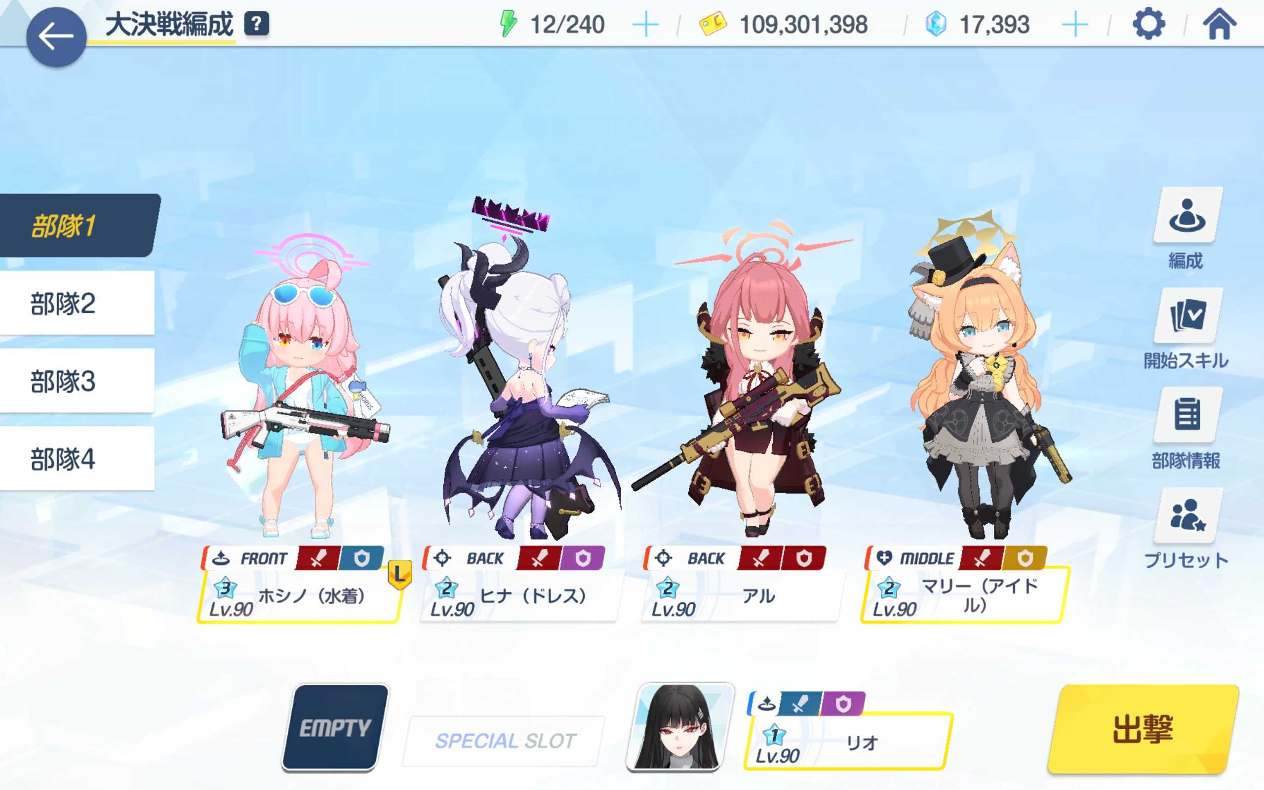 ・いつも通り大決戦は全装甲のINSを討伐することでクリア。添付した画像はその討伐パーティ。討伐にあたり、セイアとチアキを固有1に上げたよしかしゲブラだけでなくヒエロニムスにも使えるアイドルマリーちゃんは必須枠かもっすねコストダウン効果が強いのなんの。アルちゃん…ごめんね、復刻時にドレス追いかけなくて。とりあえずアルドレスとキサキ手に入れた時でいいかな、TORに挑むのは。・え、次の水曜虚無なの…・ハーフAniv近いですが、皆さんモモトーク消化していますか未読があと50ある私です少しずつ消化をお勧めします『ブルーアーカイブ -Blue Archive-』 ユウカ (体操服) 1/7スケール (塗装済み完成品フィギュア)〔予約〕ブルーアーカイブ オフィシャルアートワークス 3/DMC・REX編集部【1000円以上送料無料】WX25-CP1 ウィクロスTCG ブースターパック ブルーアーカイブ SELECTOR DP-BOX | タカラトミー ウィクロス WIXOSS カード ボックス BOX1/7 『ブルーアーカイブ -Blue Archive-』 キキョウ (塗装済み完成品フィギュア)