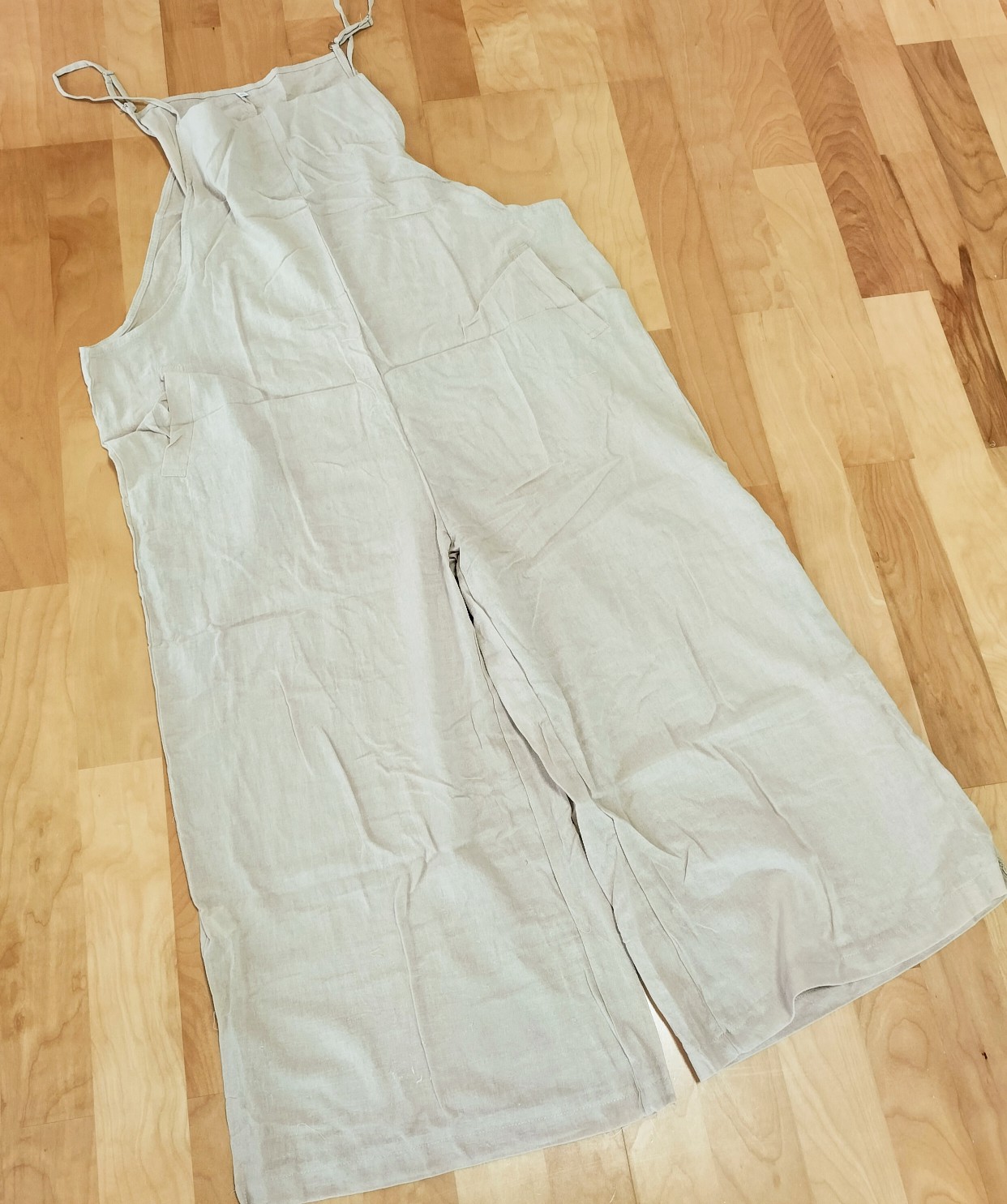 パンツ レディース 麻タッチ セミ ワイド サロペットパンツ...