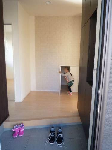 新年明けましておめでとうございますとっても遅れた年始挨拶ですが・・・よかったぁ~一月中にブログを再開できてといってももう2月は目の前・・・今日は去年・・・といっても先月の話ですが・・・26日に引渡しでそれから年始4日までかかって引越しを進めてきたのですが、やっと片付けも終わり普段の生活が戻ってきましたので本格的にブログを再開しようと思い、ブログを書いてます同時にアメブロも再開いたしました(今後はどちらか一方に転換していく予定ではありますがしばらくは同時進行で頑張ります)今回は楽天ブログのみのUPです。次回からはアメブロも更新しまーすさてさて、まず皆様に新築の我が家を綺麗な間にお披露目しようかと思いますいずれブログにUPなんて出来ないってなるかも知れませんし。※写真はすべて引き渡し時の写真を使っていますまずは、玄関から娘が覗いているのは階段下収納庫です。ココはユーティリティーのところからも戸があり通り抜けできる収納庫になっていて、中はユーティリティー側の扉に行くごとに広くなり大人ひとり立ってもまだ余裕があるくらいの高さになってます。横幅は一メートルほどあります。あ、我が家はメーターモジュールなので階段や廊下は普通のお宅より少しひろいです。さて、もう少し中をお披露目しようと思います我が家は玄関ホールからは二手に分かれて家に入ることができます上記はユーティリティースペース北陸の冬は95%ほど部屋乾しですからこのスペースは欲しかったんです写真には写っていませんが、手前にもう一つ部屋があって主人のワイシャツ、仕事用のカバン、下着、部屋着などを収納しておく部屋がありますこちらはリビングです。白を基調に日がいっぱい入るようにしました天気のいい日はとても気持ちがいいですよぉ。この写真はリビングキッチンのキッチン側からリビングを見て写真を撮りました。奥には私の姉妹とその子供達が泊まりに来たときや県外の主人の両親が来たときに宿泊できるように和室を用意というか、一番の目的はやはり日本人和室の部屋がちゃんと欲しかったそれと習っている着付けのレッスンスペースにもなりますしねやはり畳みはいいですねぇ~そしてこちらがそのキッチンの写真キッチンをごちゃごちゃさせたくなくて・・・でもなるだろうから・・・ならいっそう隠してしまえでキッチンボードやオーブンなどすべて隠しました。でも冷蔵庫だけは出ています。熱を持ちますからねぇ次はこちらこの写真はキッチン横の通路写真では伝わりにくいのですが我が家のキッチンはぐるりと一周できてそのままユーティリティー、洗面所、脱衣所、お風呂とつながっています家事導線をつなげることが私の必須条件でした。かなり間取りを考える時は頭を悩ませた甲斐がありましたこちらはお風呂赤カビやお風呂の汚れがわかりやすいように明るい色を・・・とも思ったのですが、高級感ある色合いで一日の疲れをとることも憧れだったので、思い切ってシックな高級感ある色合いをチョイスメーカーモデルルームに使われているお風呂をそのままチョイスしましたよといっても子ども3歳と一歳になったばかりの二人を入れると・・・リラックスして入る余裕なんて今はありませんだから今は汚れが目立たない分、毎日お風呂入った後に必ずぜーんぶ拭き掃除までしてあがります。すぐ乾くお風呂なので拭かなくてもいいのですが・・・カラッと掃除できれば気持ちいいです二階は・・・部屋が寝室一つと子ども部屋が3室・・・あと一人子どもが欲しいんですけどねぇ・・・出来なければ私か主人の部屋になると思います寝室は嫁入り道具のタンスと桐のタンスが入り、服を掛けれるスペースを確保してあるウォークインクローゼットがあります。二階の部屋はすべて床は真っ白。子ども部屋は戸も真っ白。寝室だけこげ茶の戸をつけました。こちらも白基調ですその他二階にはホールがあって実家からピアノ(アップライト)を持ってきて置きますアパート住まいのときに弾きたかったピアノ・・・やっと手元に置けると思ったら、とっても嬉しいですあー、久しぶりのブログが面白くない内容になりましたねぇ・・・。しばらくばたばたしていてブログへ書きたいことが溜まっているので、次回からはそちらをUPさせようと思います~ではみなさま、今年も宜しくお願いいたします追伸:こちらでは本格的にインフルエンザが流行しています。皆様も予防してくださいね