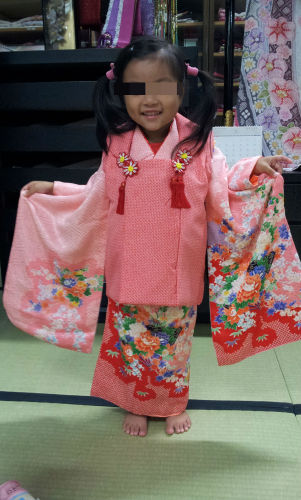 子供が二人ふたり、仕事もし、家事もし・・・何より私の楽しい時間・・・それはこうしてブログを更新することでもパソコンを立ち上げたついで、仕事のメールを確認したり、ファイルの整頓したり・・・しているとこんな時間に・・・途中8ヶ月の子の授乳タイム・・・時間が24時間では足りない今日この頃ですでも明日もあるので今日は短めに・・・と今日は、3歳の娘の七五三用の着物をレンタルに貸衣装店まで行ってきました3歳の女の子の被布は絶対に絞り風っ!!と思っていたのですぐ決まりましたが、問題は着物・・・なかなか決められず、とりあえずよさそうなものを2点仮予約してきました後は実家の母に見てもらって決めようと思いますとりあえず、候補の着物は当日のブログUPするとして・・・。数ある着物を試着したのでした女の子ってた~くさん着飾れるので、着せ替え人形のようでしたそのほかブルーや白も着てみましたちなみにもう一つ貸衣装店ではない候補の一着がこちら↓実はこれ、私が3歳のときにお祭りで着ていた着物なんですよ