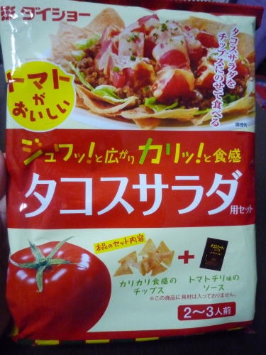 こんにちわ☆いつも訪問ありがとうございますスーバーのトマトやレタスのあるコーナーに置いてあって、いつも気になっていたタコスサラダタコスサラダは大好き今日はとうとう買ってみたそしてとうとう作ってみたちょっとご紹介まずは材料・・・このタコスセットにはソース(チリ味)とチップスのみが入っていて他の具は用意が必要です。私はまずレシピどおりに作ってみましたよとろけるチーズ50g・・・ちょうど60gがあったのでそれを使用それからトマト1個にたまねぎは半分トマトは乱切りにたまねぎはみじん切りに牛豚合いびき肉は150gを用意ここまではすごく簡単・・・でもこの後もとっても簡単まずはひき肉とたまねぎを炒めます・・火が通ったら弱火にしてセット内容のタコスサラダソースを加えますそしてトマトを投入混ぜ合わせたら、ココまでのものをフライパンの中央に集め、とろけるチーズを上に乗せてふたをして5分間蒸し焼きに5分たったらお皿に盛りますその周りに私はレタスを乗せましたよ3歳の娘もレタスをちぎって盛り付けてくれましたその上からパセリを細かくちぎって盛り飾りつけ小さな娘と一緒に作れる簡単料理で楽しいですよそして最後はタコスサラダセットについてたチップスを回りに盛り付けて・・・完成です素人写真ではなかなか美味しそうには見えないかもしれませんが、美味しかったですよ今後のおもてなし料理には使わせていただきます皆さんもどーぞ【ダイショー】トマトがおいしい タコスサラダ用セット 90g(タコスミート用ソース50g、コーンチップス40g)×10入こちらは10入りなので、まとめ買い用ですが、スーパーでは一袋で売ってます(笑)