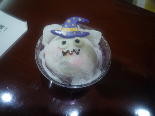 今週末近くのイオンモールへ出かけましたその時にサーティーワン31アイスへGOそして娘が選んだアイスは・・・ハロウィン限定の・・・『お・ば・け』アイスお好みのアイスの上にもちもちギュウヒが掛けられていて、よく出来たお化けアイスですとってもかわいいアイスでしたあまりにかわいいアイスだったので『写真撮ってぇ~』と。いただく前に記念撮影(笑)先週末に私の姉が娘にお菓子をくれたのですが、そのお菓子はハロウィン限定版で、普段娘の食べたことのあるお菓子だったのに『おばけ怖い』と言って食べなかったのに、アイスは別のようです(笑)
