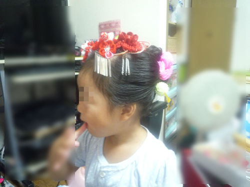 日曜日のブログになります今日は私の実家の秋祭りそこで今日は来月の七五三を控えて、前撮りをしてそのまま晴れ着で秋祭り鑑賞へ。朝は私の着付け時間から逆算して5時起きして自分の髪をセットしメイクし6時40分に娘を起こしに・・・ぐずるかと思いきや「着物着る時間だよ」とやさしく耳元でささやいただけで「はいっ」と寝起きよく起きてくれた娘先日から着物を着るのを楽しみにしていたので、よっぽどうれしかったのでしょう。今回、私が娘の日本髪結いに挑戦いつも髪を結ぶときはおとなしくない娘は大好きなTOY STORYを見ながら、ジーっとしてくれていました反対側からみた感じは・・・うしろにさしてある絞り珠のついたかんざしや「かのこ」は私の幼い頃に使っていたものを使用し、前のつまみ花かんざしは今回娘のために購入したもの。てっぺんにつけている髪飾りは姉が姪っ子のためにと購入してくれたものを使用しました上出来でしょってすみません・・でもド素人にしては・・まあまあかなぁ~と自画自賛着物をきた感じは・・・秋祭りの祭り行列を観ているときは、私の幼少のころの帯をつけてみましたそれがこれです↓というか、いつもはおてんばの娘も着物を着ると女の子になるなぁ~と思っていたのに、獅子舞や天狗さん、奴(やっこ)さんが怖くて、父親にしがみつく娘・・・着物なんてどうでもいい!!状態です(笑)七五三前撮りでは被布を着けて写真を撮りました私も写真を撮るときだけ着物を母に着せてもらいましたが、すぐ脱ぎました大変でした。ところで秋祭りには着物をきていたものですが、最近はいませんね娘はそのため目立っていました。