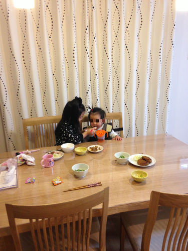 皆様こんにちわ寒い日が続いてますがいかがお過ごしでしょうかインフルエンザ流行してますねぇ今日はちょっと心温まる出来事をお話しようと思います我が家には3歳7ヶ月と1歳と2週間の娘が二人います先日(今日の出来事ではありませんが・・・)私の仕事が遅くなって、保育園にお迎えにいった時間が6時過ぎ・・・それからスーパーへ買い物へ行って家に帰ってきたら、7時30分過ぎになってしまいました。おなかをすかせた二人・・・おねえちゃんは『ご飯まだぁ~』と言いながら遊んでましたが下の子は容赦なく泣き付いて来ますご飯の用意に焦るわ、子どもを早く泣き止ませてあげなきゃと焦る自分・・・自分の分を口へ運ぶとすぐ妹のお茶碗とスプーンを持って妹の世話をする姉・・・まだ3歳と思っていても、お姉ちゃんですねぇ出来たものからテーブルに運ぶと・・・さっさとお姉ちゃんがテーブルから背伸びをして一品おかずを手にして『パクリっ』それを見ていた下の子は“わたしもぉ~”と言わんばかりにさらに声を大きくして泣き出す始末・・・・お姉ちゃんを起こるわけにもいかず・・・とりあえず今は泣かしておいて一刻も早く夕食を作り上げることに専念しばらくすると下の子が泣き止み・・・見てみるとお姉ちゃんが妹の分のおかずにも手を伸ばして取り、食べさせているのです『お姉ちゃん、食べさてくれるの』と聞くと『いいよぉ~』と笑顔椅子に二人とも座らせると・・・食べさせては・・・自分の分もパクリ・・・おかげで夕飯つくりに集中できて、出来上がりその後私も座りご飯を食べようとすると『お母さん、(私が妹に)食べさせるから、お母さんいいよ、自分の分食べてね』と姉その後も上手にこぼさず妹に食べさせてくれていたので、私はその日、ゆっくり一人でご飯を食べさせてもらいました子育てしていると自分の分のご飯は急いで食べることが当たり前になってましたが・・・至福のひととき・・・というか、お姉ちゃんの成長と対応に感謝です