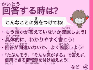 ・④について、上から3番目「回答が正確か」を「回答が間違いないか」に変更しました(漢語の「正確」よりも和語の「間違いない」を使った方がわかりやすいと考えました)。