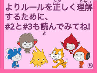 ・Scratchのルールについての質問 → コミュニティーガイドライン、利用規約、FAQなどの解釈について