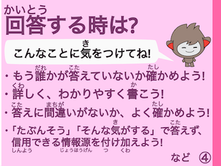 4. ルールなどの他のトピックで扱うべき質問がされた時には特に、 質問者のことをよく考えて 回答してください。