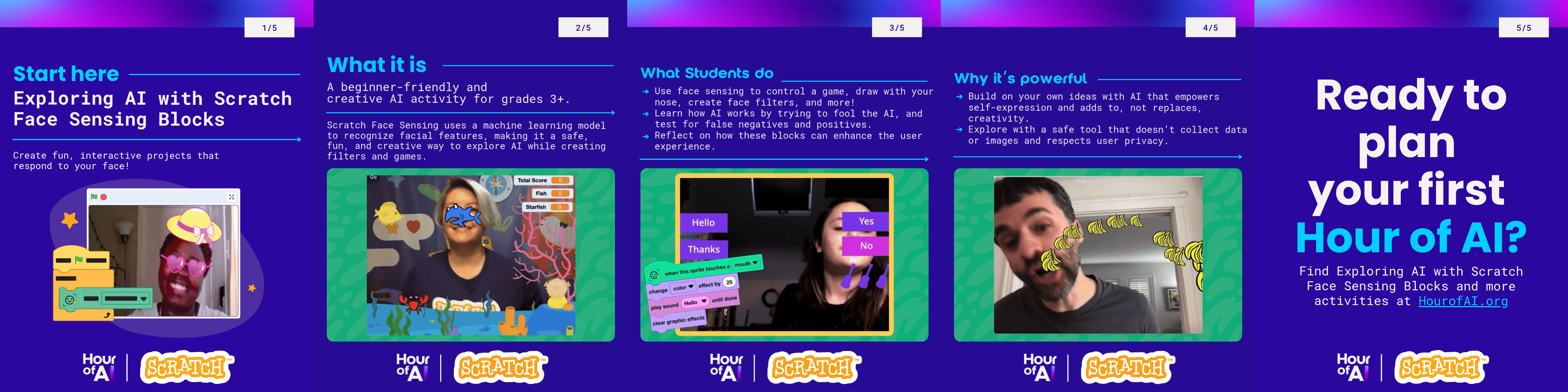 Check out Scratch's Hour of AI activity that’s as creative as it is educational. It’s giving face filters, nose-drawing, and machine learning magic! You can find the Hour of AI activity catalog here . Find our Face Filter starter project here . And learn more with our resources, including Code Cards and a Tutorial Video, here .