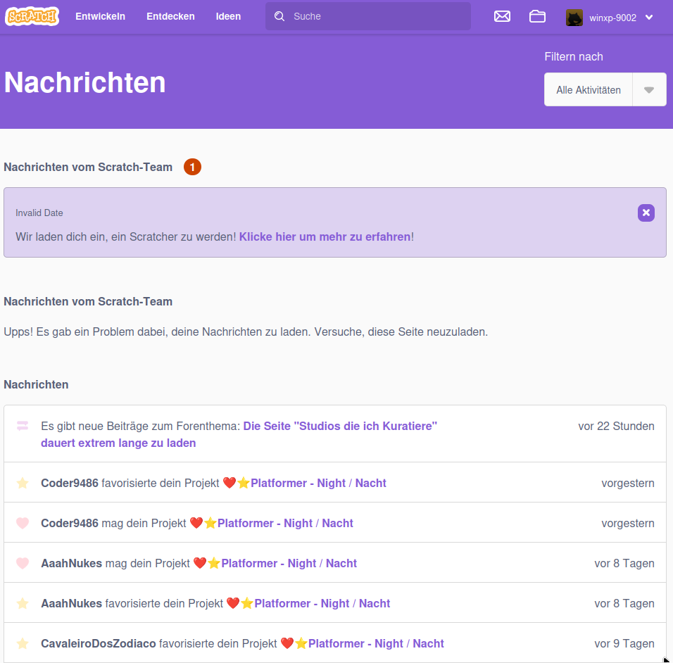 Ich bin nunmehr seit 6 Jahren Scratcher, aber heute hat Scratch mir das folgende angezeigt:
