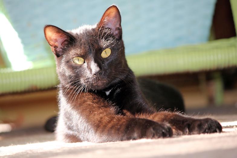 Lovebug. October 31, 2008. I noticed him in an apartment complex where I had a dog walking job. I had been feeding him for a few weeks when the apartment manager spoke with me. She said he had been left behind 7 months earlier when his 'owner' moved and the residents were tired of him killing birds. She told me they were going to take him to the shelter soon. I put him in my car that day to be neutered and he came home with me.